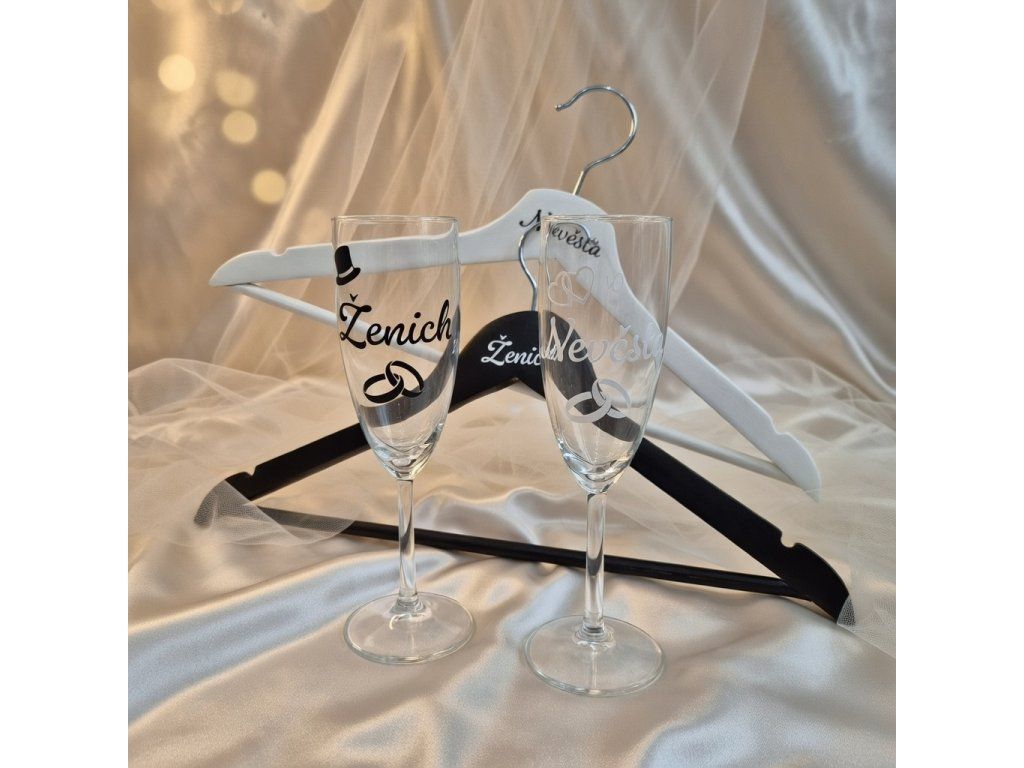 Svatební set Nevěsta + Ženich – Ramínka + Skleničky