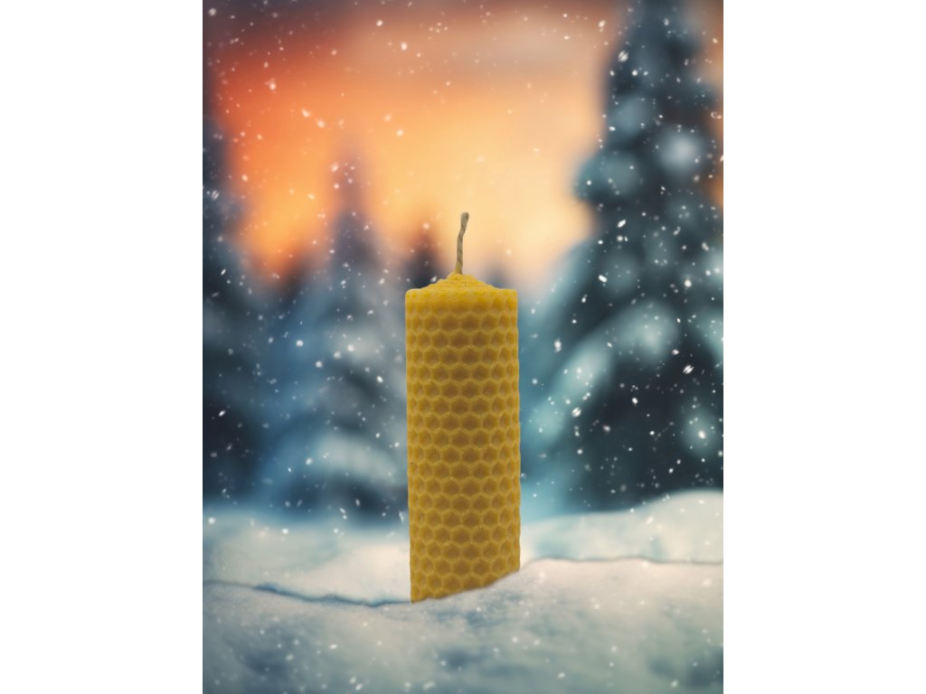 Dekorativní svíčka z čistého včelího vosku s elegantním vzhledem pro sváteční chvíle.